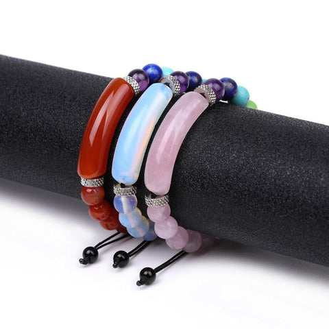- Composition of this chakra bracelet: Amethyst, Lapis Lazuli, Turquoise, Tiger Eye, Amber, Red Onyx, Jade, Zinc Alloy.
