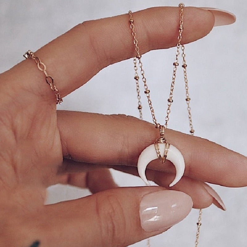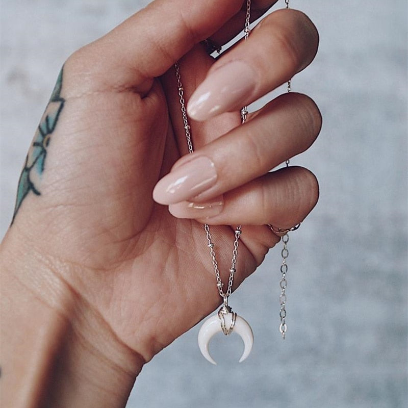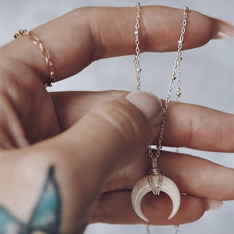 The crescent horn is a standout piece that adds personality to any look. Whether you're getting ready for a night out or just handling daily tasks, this half-moon pendant coated in 925 silver is the perfect accessory.