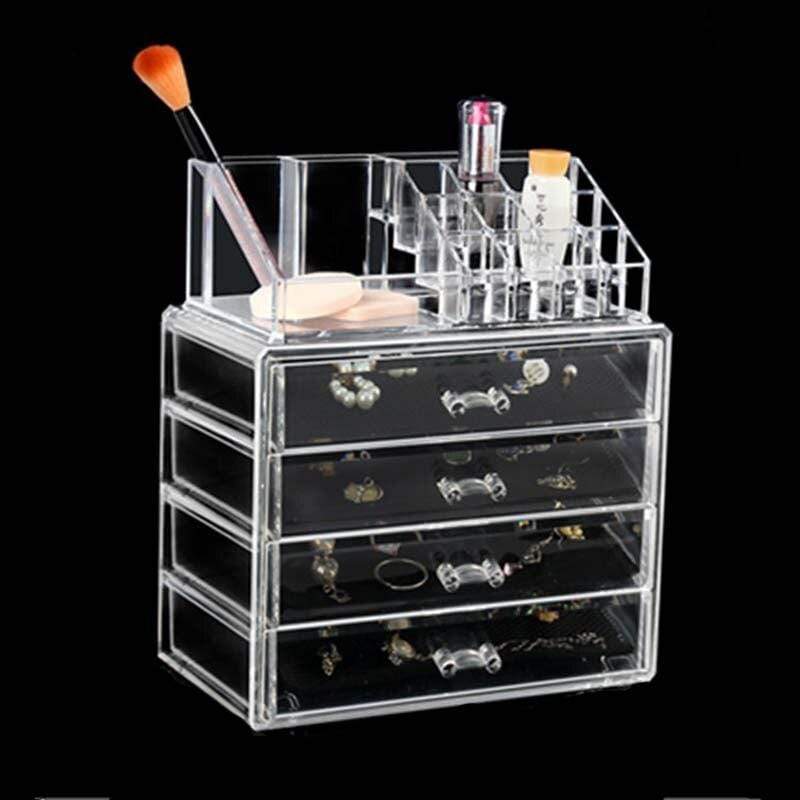 Create your own storage space with this acrylic makeup organiser with drawer. The top of the base includes a lipstick holder. Choose how you want to organise your makeup collection.
