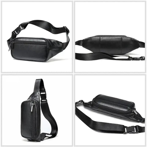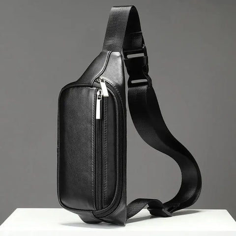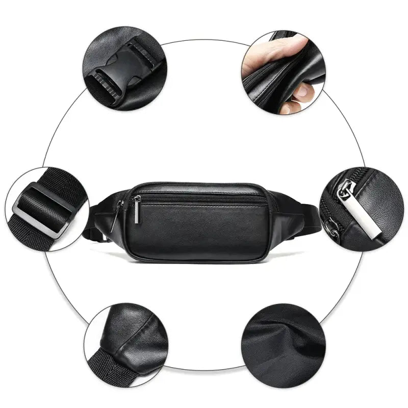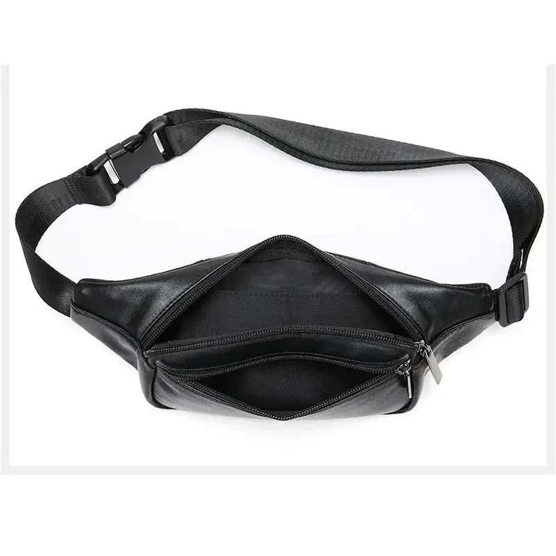For men seeking a practical and stylish accessory, this adjustable black waist bag is the ideal solution. This handy bag made from vegan leather perfectly complements your look with a touch of sophistication and is an essential accessory for any season. With its high-quality design and modern style, it meets the needs of the contemporary man, whether on a busy day or a leisurely stroll.