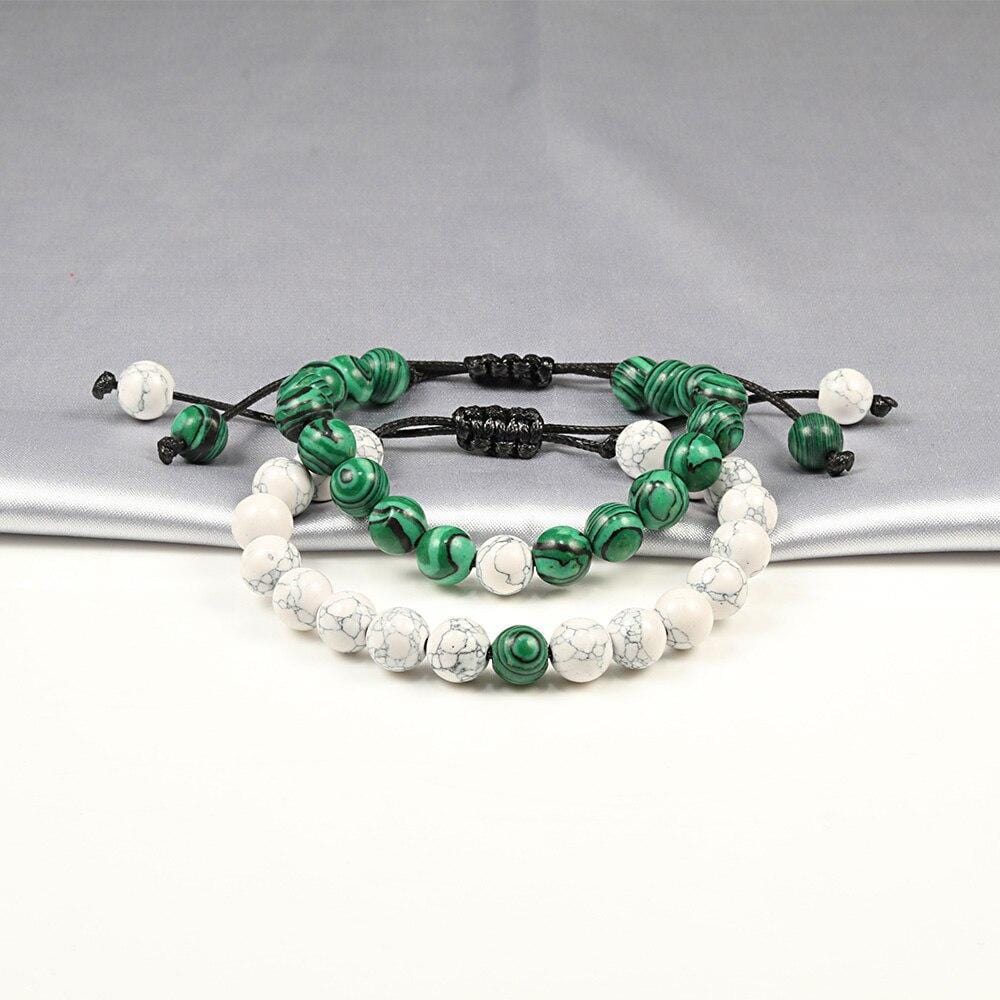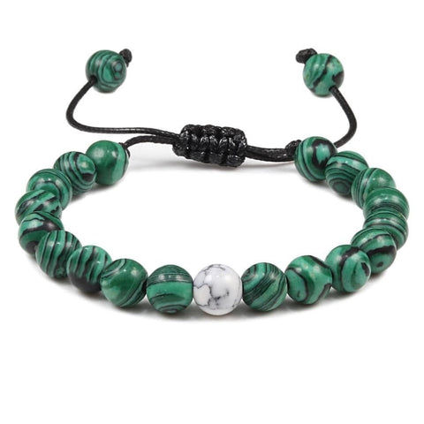 Enhance your look with this adjustable bracelet made of natural malachite stone. Natural malachite stones symbolise luck and prosperity. Additionally, the bracelet is adjustable to fit perfectly on your wrist.