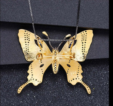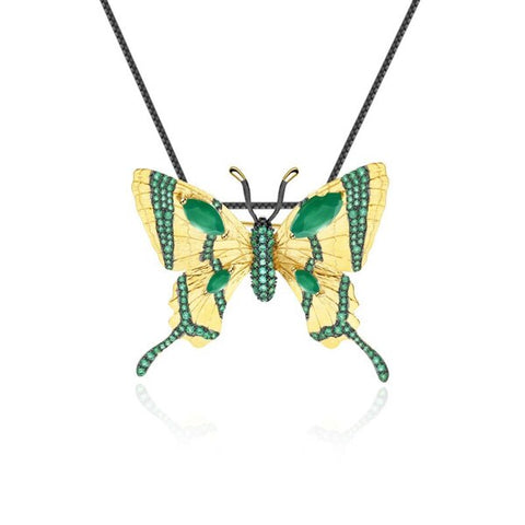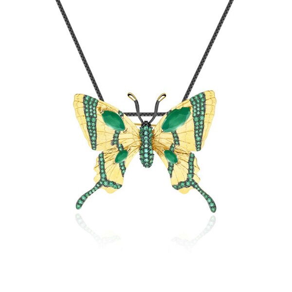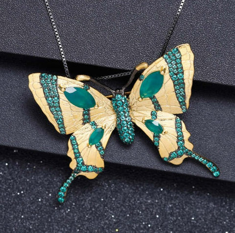 Dazzling necklace with butterfly, where emerald and green agate complement each other beautifully.