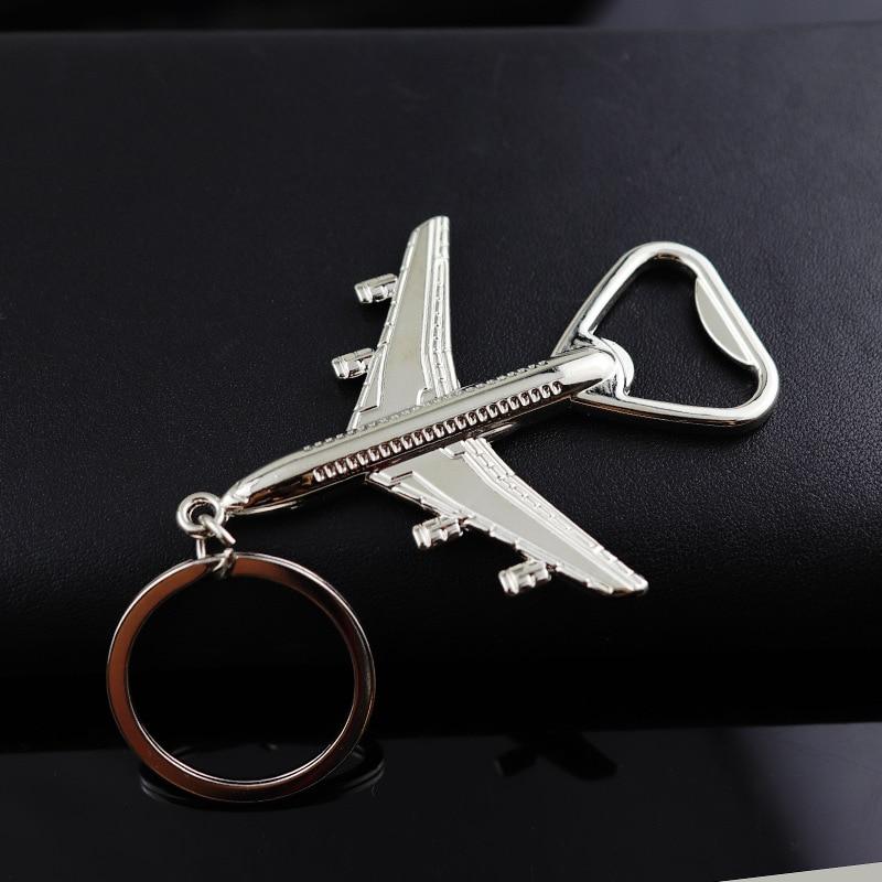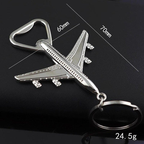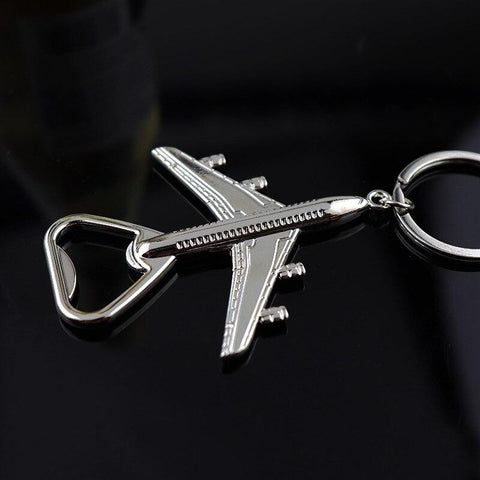 Take this symbol of your love for travel and spending time with friends anywhere. This airplane-shaped key ring with a bottle opener is practical and useful in any country, as well as being a unique accessory.