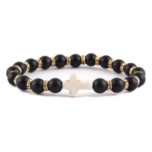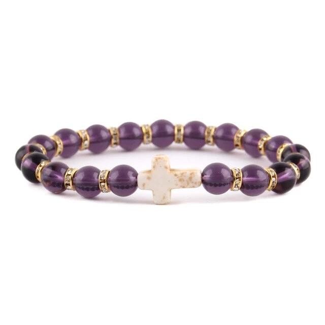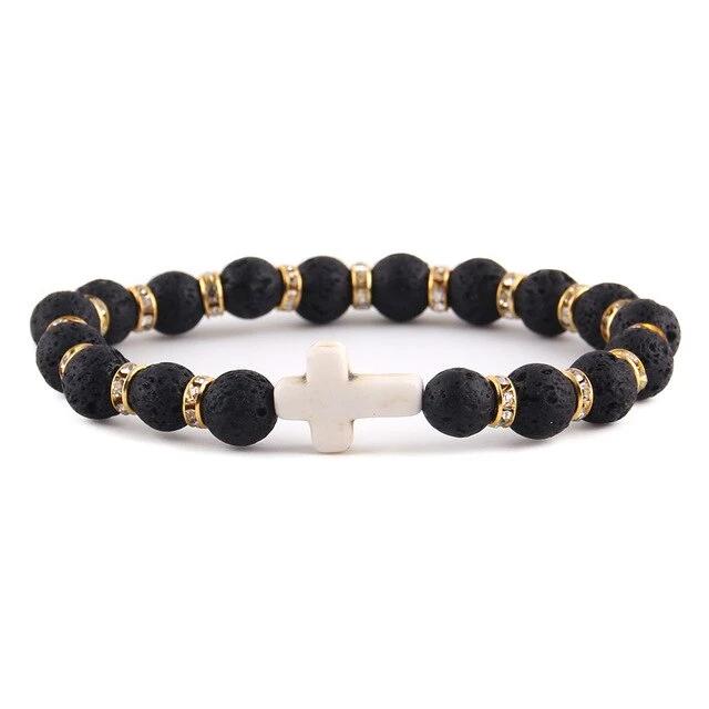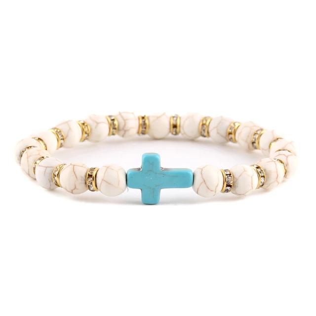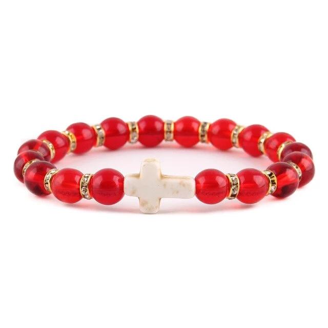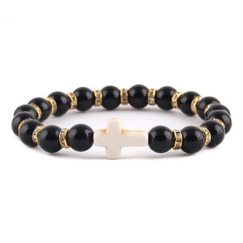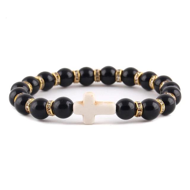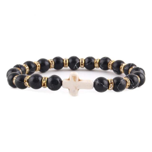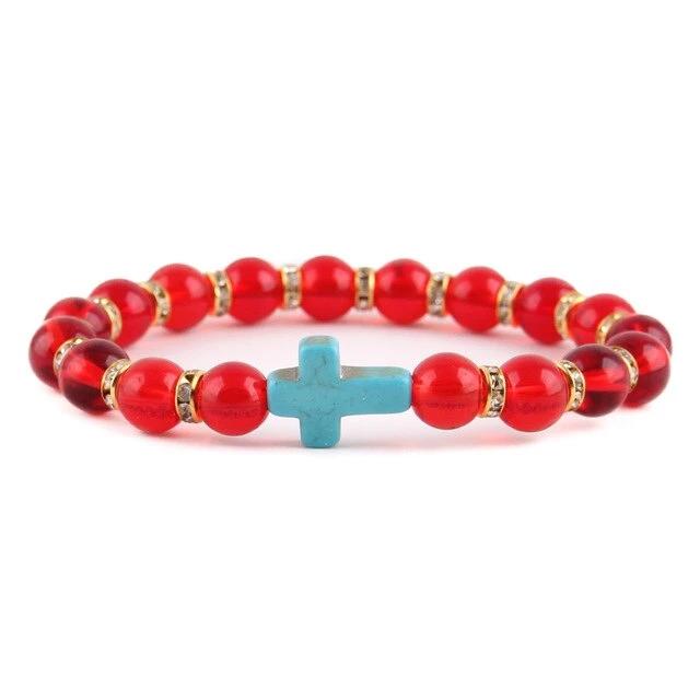 This unisex Christian bracelet made of amazonite is the perfect gift for the religious man or woman you are, aspire to be, or wish to gift it to. Crafted with a sturdy and attractive material, the bracelet features a Christian cross – a symbol of Christ's love – framed by amazonite beads. The amazonite gets its name from the mighty Amazon River, where it was discovered and named. The green hue of this stone, with slightly lighter shades, also reminds of the colour of the river's water.