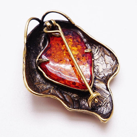 This vintage amber broach is a stunning piece of jewellery. It is made of amber, a beautiful gemstone of golden colour. The Vintage Amber broach features an intricate and unique design, making it an excellent way to add elegance to any outfit.