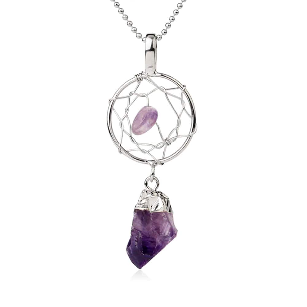 This beautiful dream catcher necklace with amethyst brings you strength and goodwill.