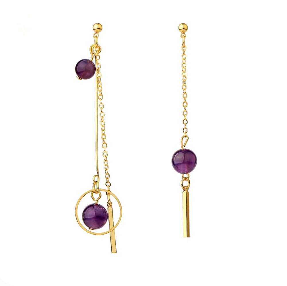 These stunning gold earrings with amethyst bring you wisdom and strength. Amethyst is often used in meditation, aiding in relaxation and intuition.