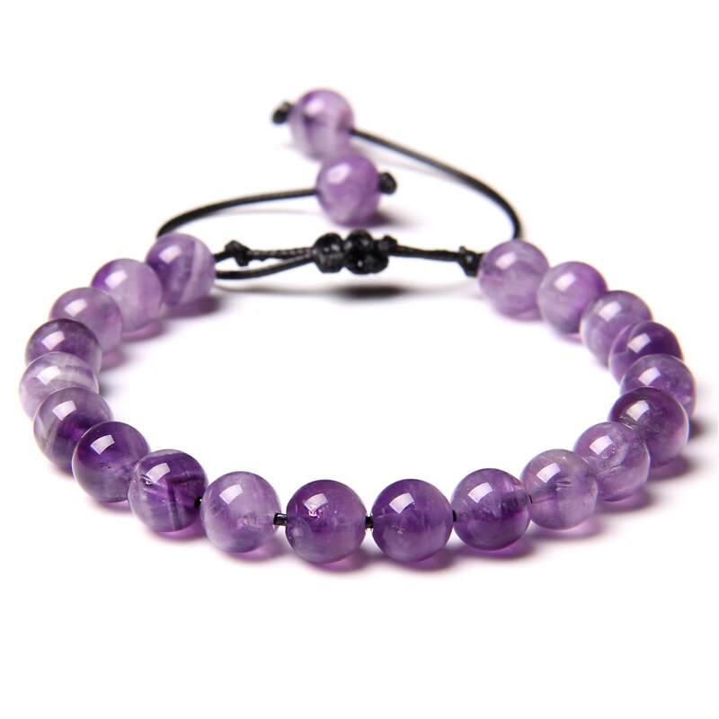 Introducing our stunning 8mm amethyst bead bracelet! This wonderful piece is made with natural amethyst stones and durable cotton cord, making it the perfect accessory for any look. Amethyst stones are known for their healing properties. They are said to promote relaxation and relieve stress.