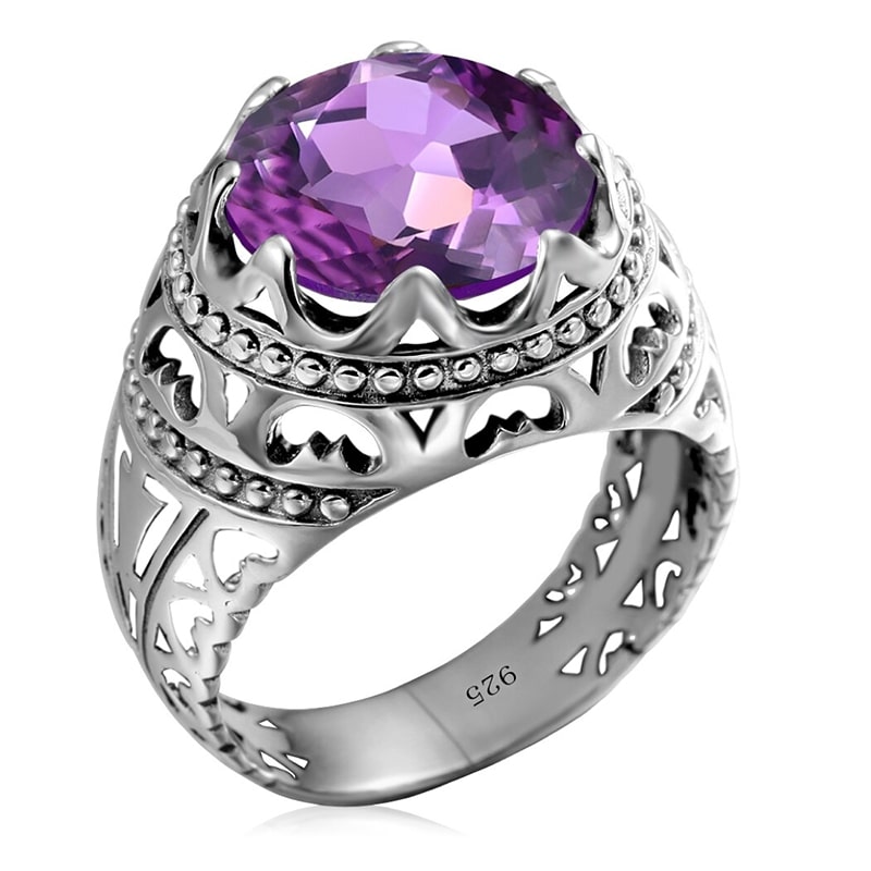 This ring with an antique amethyst stone is a stunning piece of jewellery. The silver ring is made from 925 sterling silver and features a beautiful amethyst stone in the centre. The amethyst stone has been cut into an oval shape and is set into the ring. The ring has a polished finish and would make a wonderful gift for someone special.
