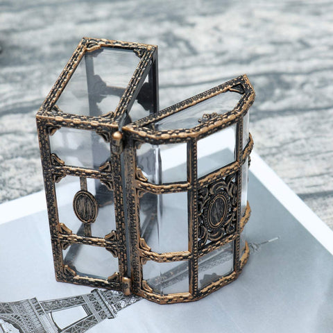 This Antique Glass Jewellery Box is a true treasure with a distinctive design. Shaped like a treasure chest or inspired by pirate motifs, it adds a unique aesthetic to your jewellery collection. Made of glass, it offers crystal-clear transparency so you can admire your precious pieces even from the outside. The high-quality plastic trim ensures durability and optimal protection. With its secure latch closure, your jewellery stays safe and well-protected. The Antique Glass Jewellery Box is the perfect choice for anyone looking for both elegance and security for their most valuable jewellery.
