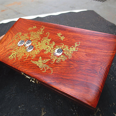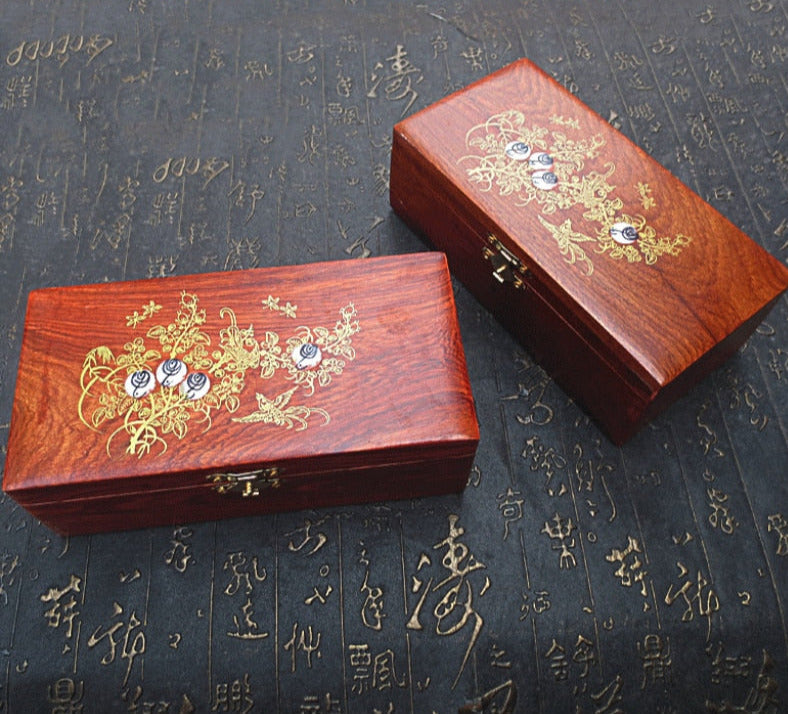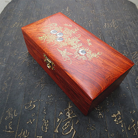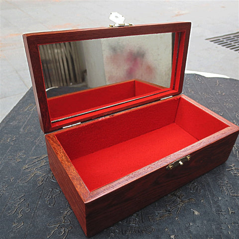 This Antique Wooden Jewellery Box is crafted from premium rosewood. A patterned vintage-style box featuring a mirror and secure clasp.