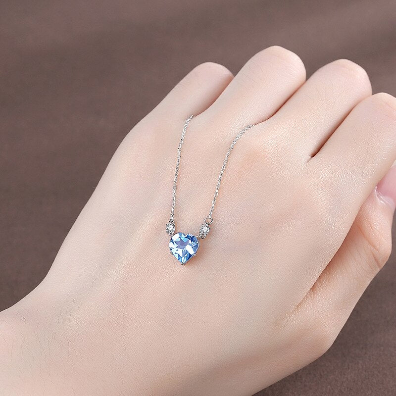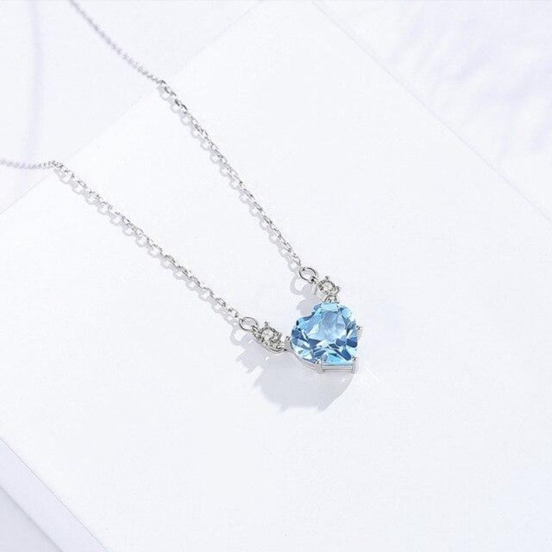 If you're looking for a sophisticated and elegant design, blue is one of your best allies. This heart-shaped pendant necklace with aquamarine quickly complements your style.
