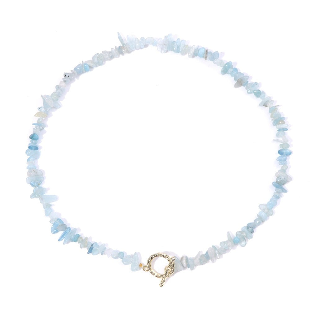 The special feature of this necklace is the aquamarine beads, known for their ability to calm and soothe those who wear them. It is also said that they promote communication and understanding, making this necklace an ideal gift for someone special. Whether to pamper yourself or a loved one, this necklace will certainly be a cherished gift.