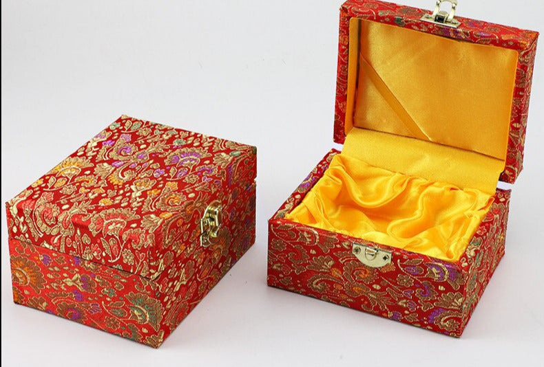 Our beautiful Asian Silk Jewelry Box combines elegance and protection. Its refined silk finish ensures your precious jewelry is well protected. Featuring a design inspired by Asian motifs, this box adds a touch of exotic charm to your space. Equipped with a steel lock, it keeps your jewellery secure. The rectangular box is available in three sizes – large, medium, and small – offering an organised space for all your treasures.