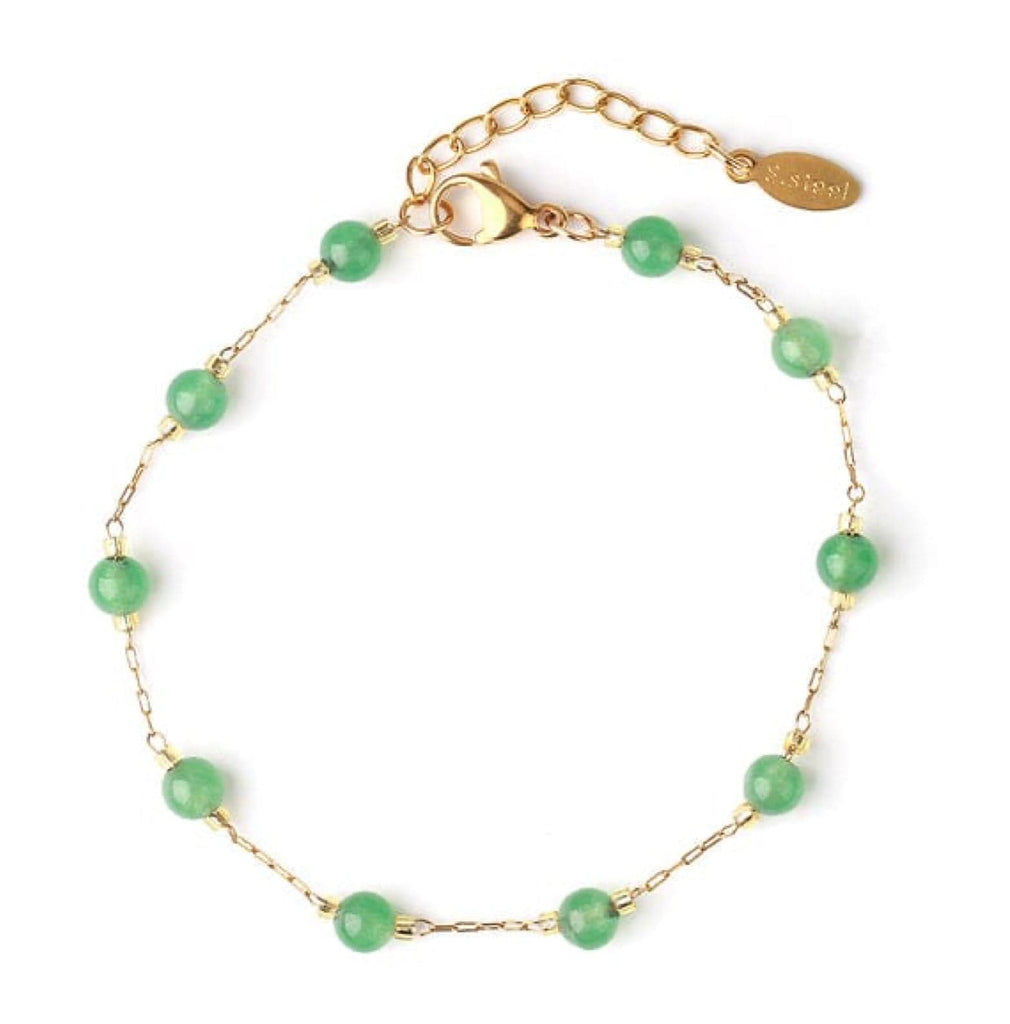 This vintage bracelet is made of aventurine, a green quartz known for its good luck properties. The stainless steel provides a strong and durable base for the gemstone, making it perfect for everyday wear. Whether you are looking to attract luck or simply want to feel stylish and elegant, this bracelet is perfect for you.