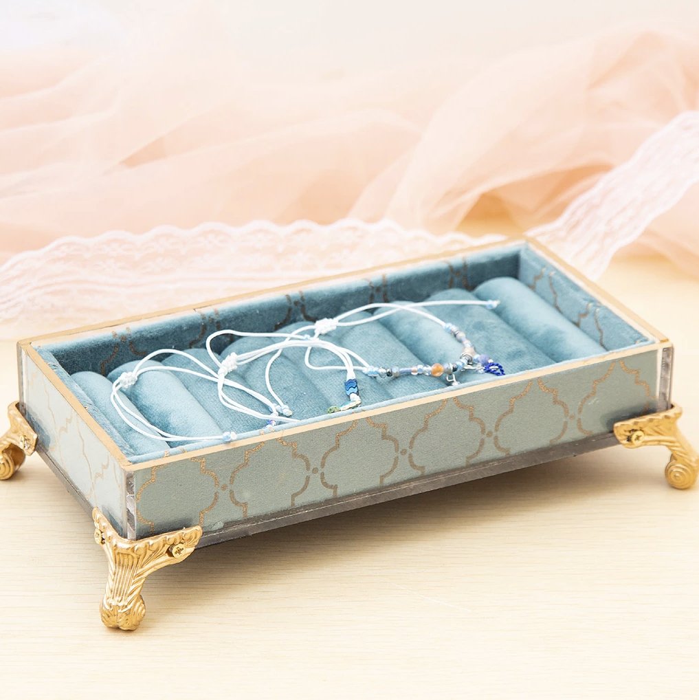 - Made from high-quality velvet, plexiglass, and brass