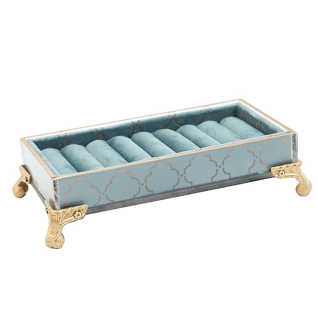 Your rings and stud earrings will be safely stored in this Baroque Jewellery Box, which features small, convenient earring cushions in a stylish blue hue. This charming ring box is a wonderful addition to any baroque-style décor. Its compact size means it takes up very little space in your room. Its unique design adds a refined touch to your home décor. This small storage box will keep your rings and precious signet rings secure.
