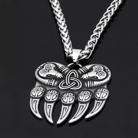 The steel pendant is a stylised representation of a bear's paw and claws.