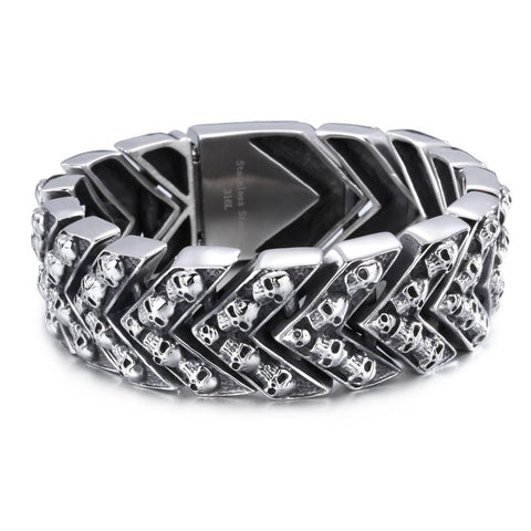 If you're a fan of chain bracelets, you'll love this biker style steel bracelet with skulls, full of personality.
