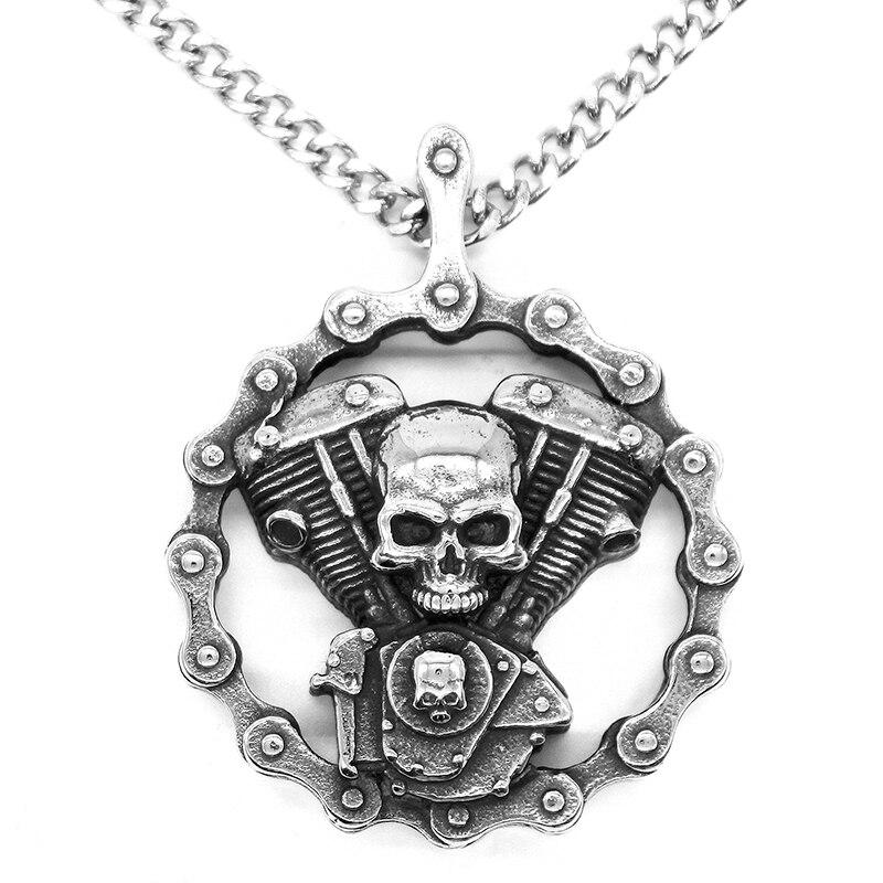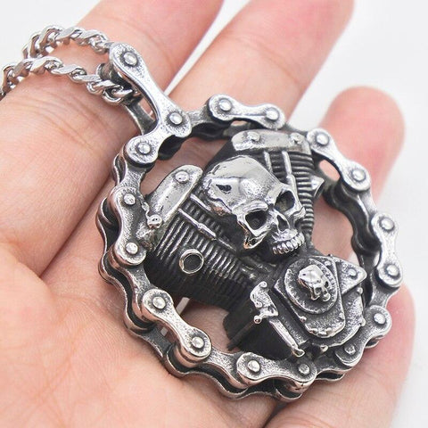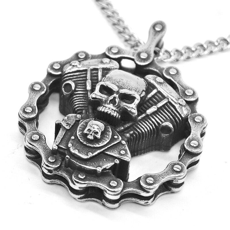 This Biker necklace is adorned with a skull and has been specifically designed for bikers who love big machines and seek thrill.