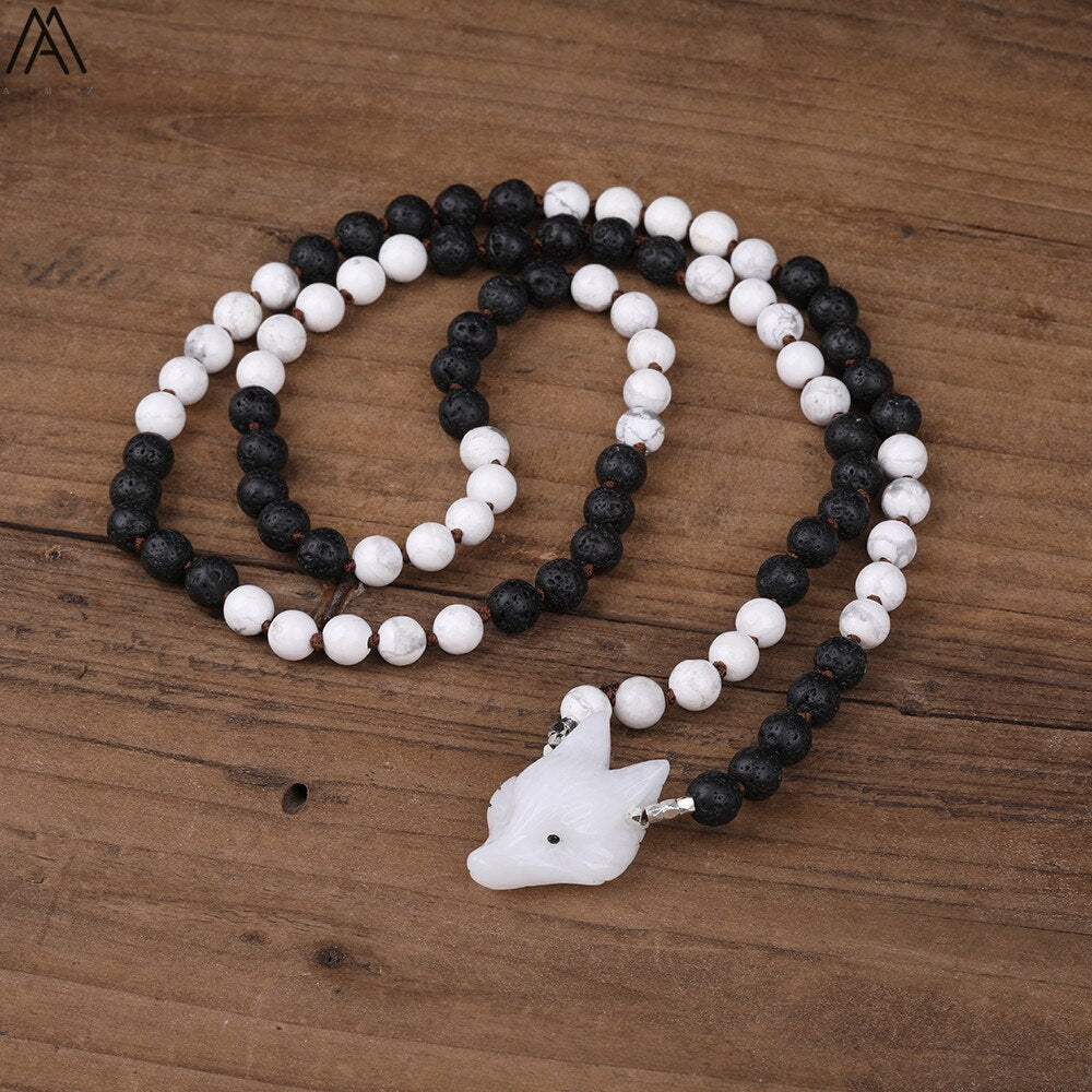 Necklace made from natural black and white volcanic stone, transformed into a stunning accessory. Brings you luck and success.