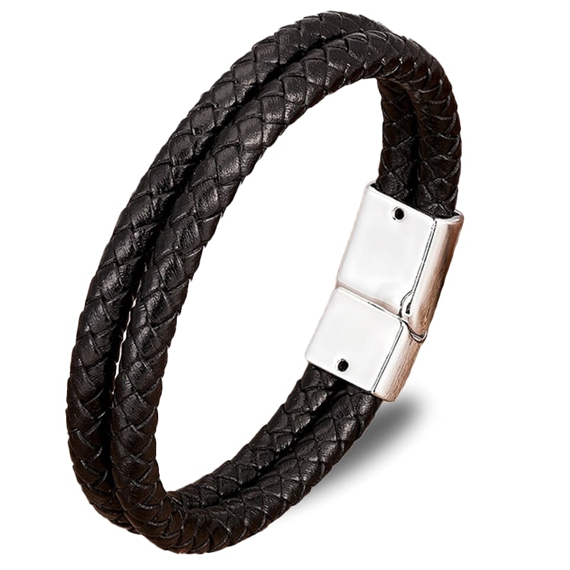 The black double leather bracelet for men is a simple and discreet fashion accessory. Thanks to its uniform black colour, the bracelet subtly complements your look, adding an extra touch of elegance to any outfit. Whether you wear it occasionally or every day, this black double leather bracelet will certainly become an essential piece in your jewellery collection.