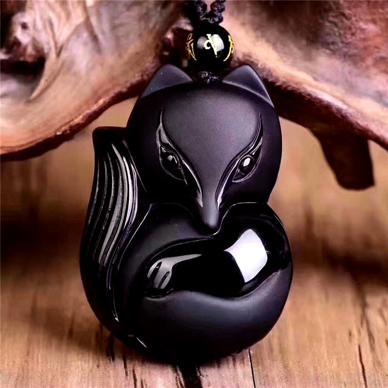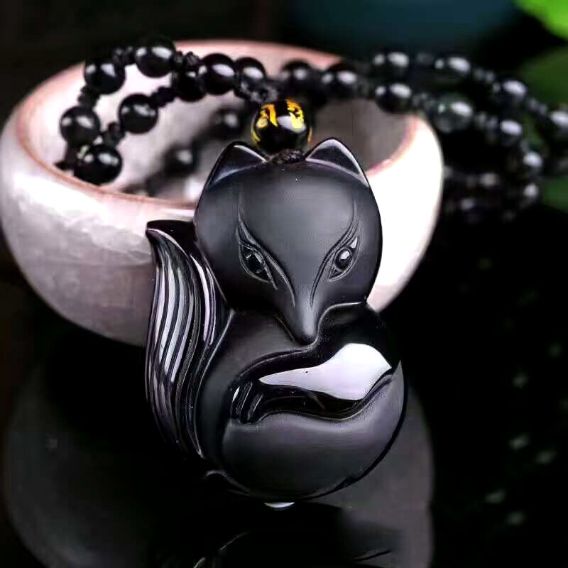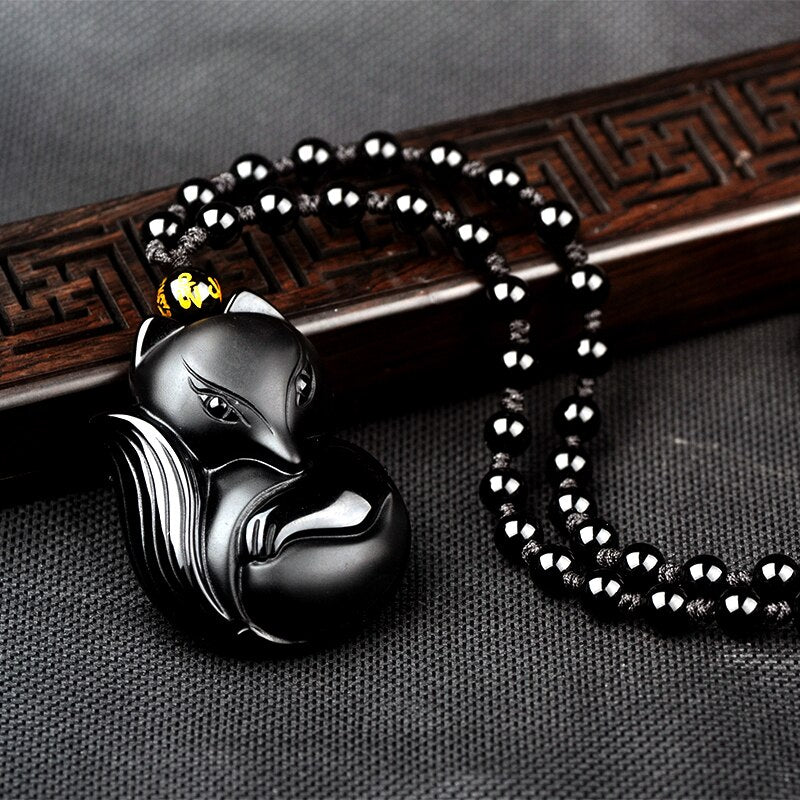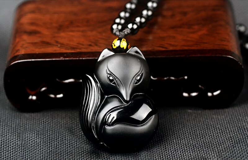 Looking for an obsidian necklace? Then this black necklace with an obsidian fox pendant is for you!