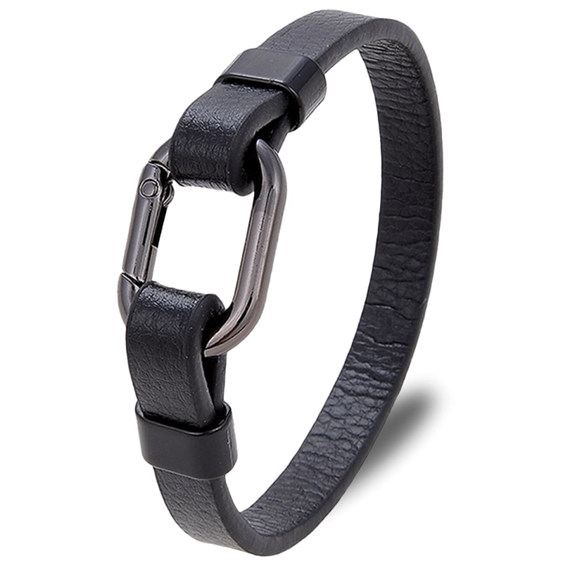 Elegant Leather Bracelet with Black Carabiner, Perfect for Men.