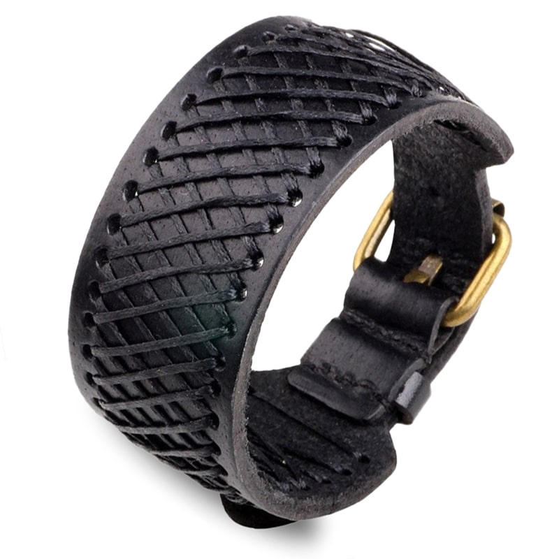 Our wide black leather men's bracelets have everything you need to enhance your look with style and sophistication. The timeless black leather matches any outfit, and the adjustable clasp fits all wrist sizes, making this wide black bracelet easy to wear on a daily basis. A perfect fashion accessory for any jewellery collection, our wide black leather bracelet attracts even the most demanding male fashion enthusiasts with its simple and discreet design.