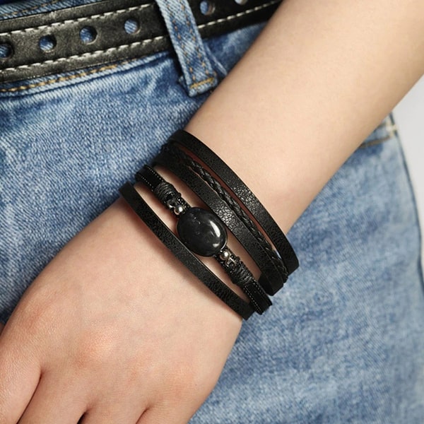 You'll love the style of this women's black pearl leather bracelet.