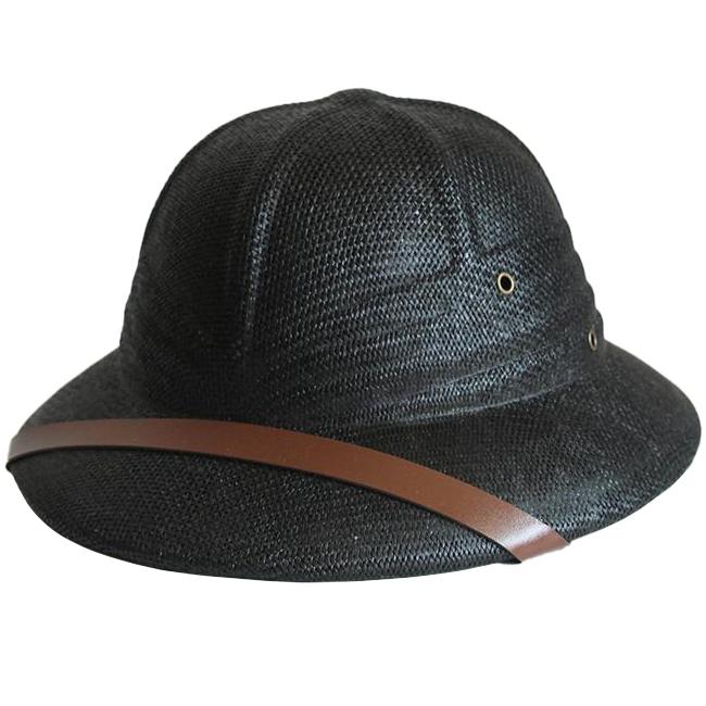 Original and practical black safari hat, inspired by the curved shapes of the famous helmets of that era, now reinvented in straw. This safari hat is sure to draw attention, whether you're exploring trails or spending the day in the city. With its indispensable character, this hat is an essential item in any summer wardrobe.
