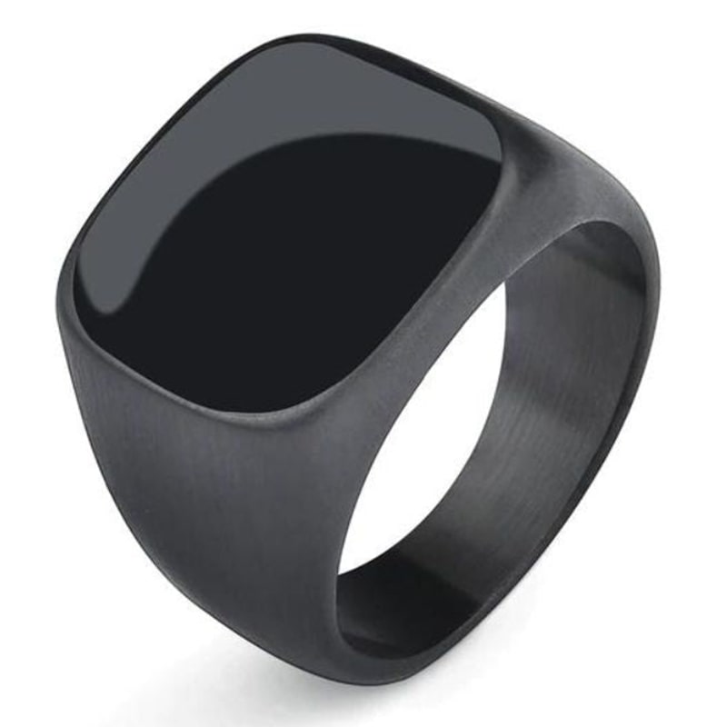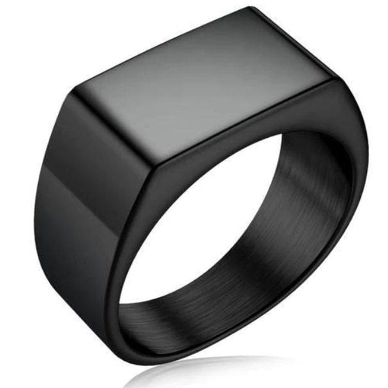 This beautiful black signet ring is available in 4 different geometric shapes (rectangle, square, hexagon, or irregular). The elegant design makes it a modern piece that easily complements any look. The jewellery is made of black stainless steel. The surface does not rust or fade over time.