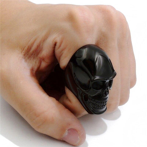 Adopt a hellish look with this black skull ring featuring a human skull! "Black is the refuge of colors".