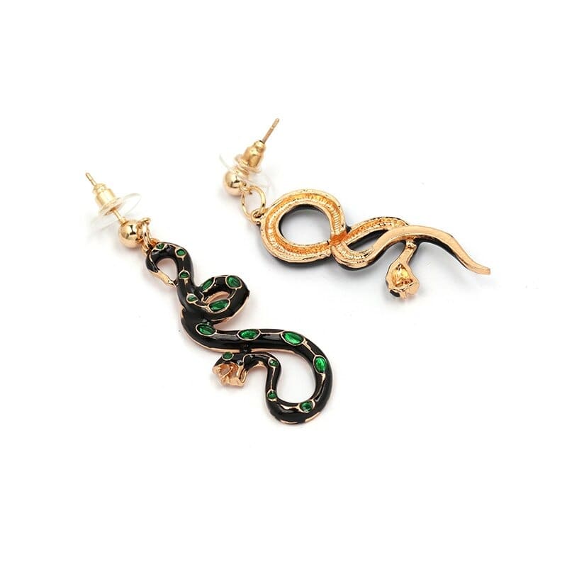 These snake earrings can be simple or sophisticated, depending on what you pair them with. Their black colour with green splashes matches perfectly for any occasion. Besides the aesthetic quality of this piece of jewellery, the snake pattern is also a spiritual symbol. Protective, this piece of jewellery also signifies eternity and fertility.