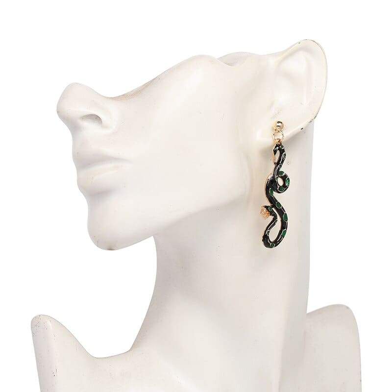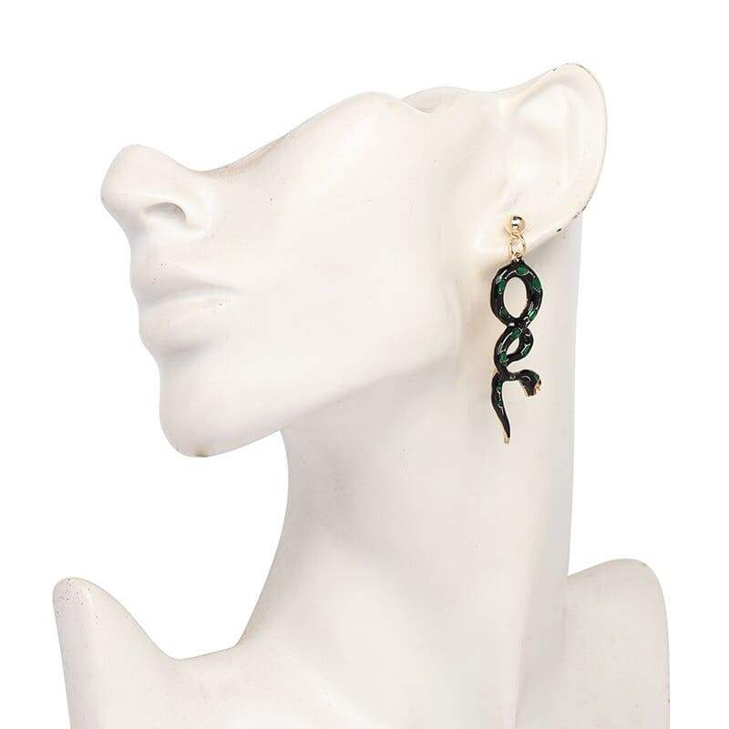 These dangling, shimmering snake-style earrings will surely add a touch of style to your look. They are extremely comfortable to wear, so you'll only feel joy while wearing them. This venomous piece of jewellery is simply irresistible. Its timeless design means you can wear it every day.