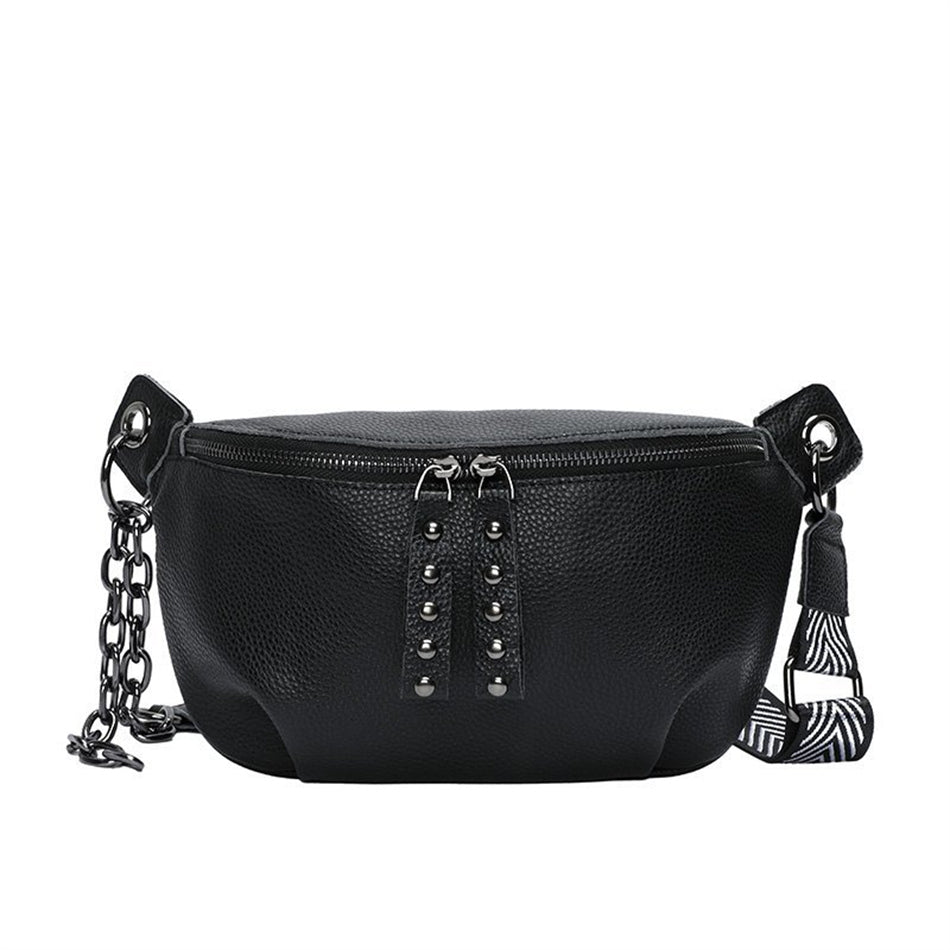 This black and stylish women's bum bag is the perfect accessory for modern women who want to combine style with practicality in their everyday life. Made from vegan leather, this bag is a sophisticated way to carry your belongings.
