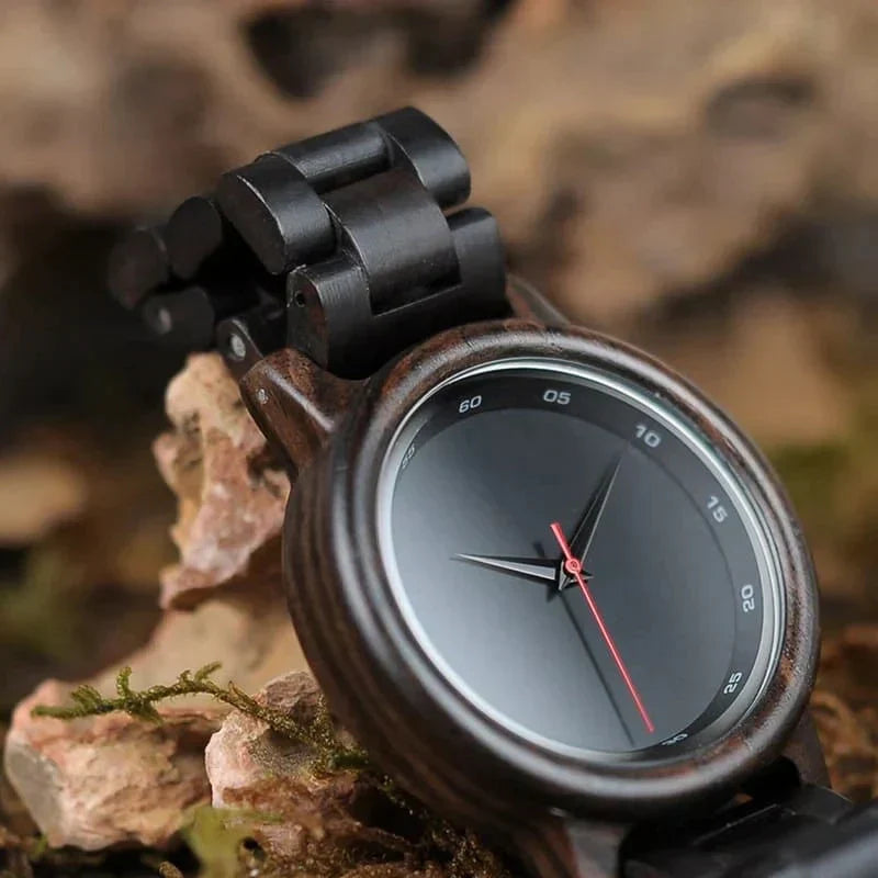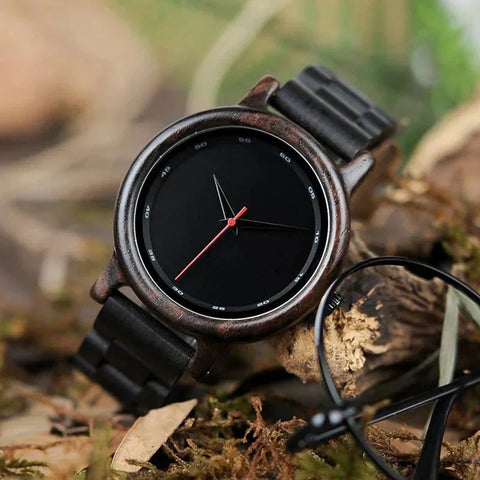 Add a touch of freshness to your style with this black wooden watch. Made from natural wood, it has a safe and durable quartz mechanism that will accompany you for years.