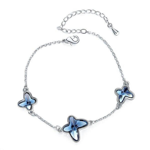 Pair your most elegant looks with this stunning butterfly bracelet! The silver chain and butterflies represented by blue crystals create a perfect synergy, thanks to the complementary colours and captivating aesthetics.