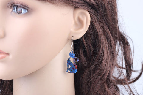 Eyes and mouth open, wondering what this blue cat might be thinking. Choose these Blue Cat earrings.