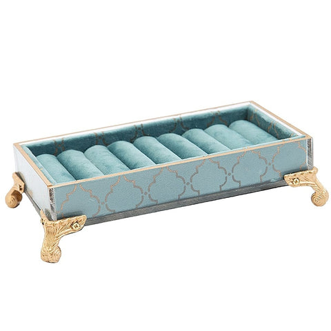 This blue ring holder is charming and allows you to store your entire ring collection. The small, comfortable duck-blue cushions are made of velvet to ensure maximum comfort. Without a doubt, this ring holder easily complements a baroque decor. It is quite small in size, but its originality is undeniable.