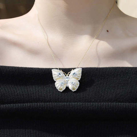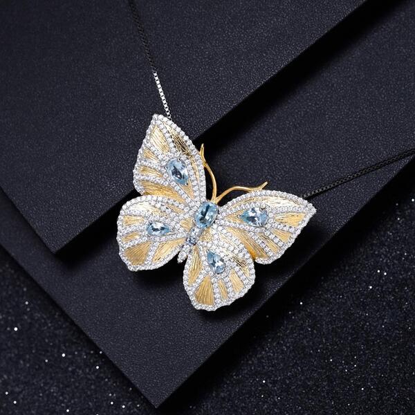 Embrace the grace and elegance of the butterfly with this beautiful necklace adorned with blue topaz crystals.