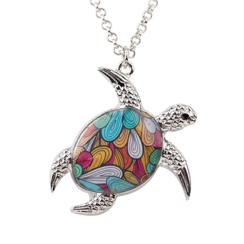 Want to create a unique style? This Bohemian turtle necklace is the accessory you need! You'll love the various colours on the turtle shell!
