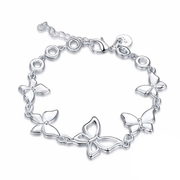 This butterfly bracelet made of solid 925 silver is a jewel that maintains its shine and splendor over time. The butterflies, crafted with meticulous precision, form a unique design that enchants and pleases the eye. A little more imposing than a classic bracelet with link chain and small pendant, it is an elegant and striking way to adorn your wrist.