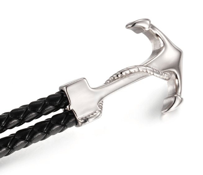 This men's bracelet features a silver nautical anchor and a braided leather cord, giving it an extremely masculine look. Both elegant and attractive, this bracelet accentuates your wrist.