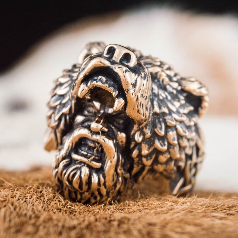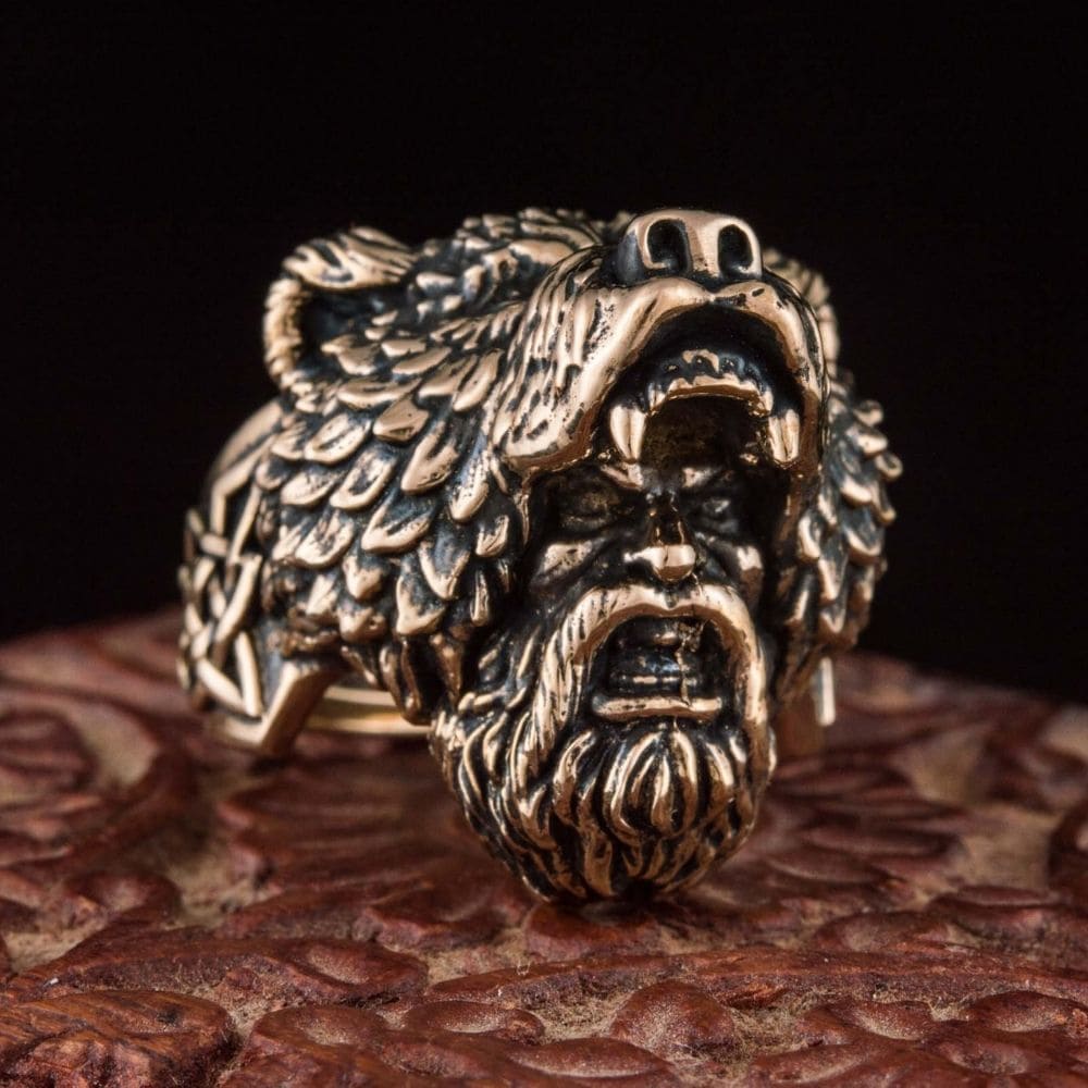 Feel the power and spirit of the bronzed warrior with this bronze ring, which features the image of the legendary berserkersoturi.