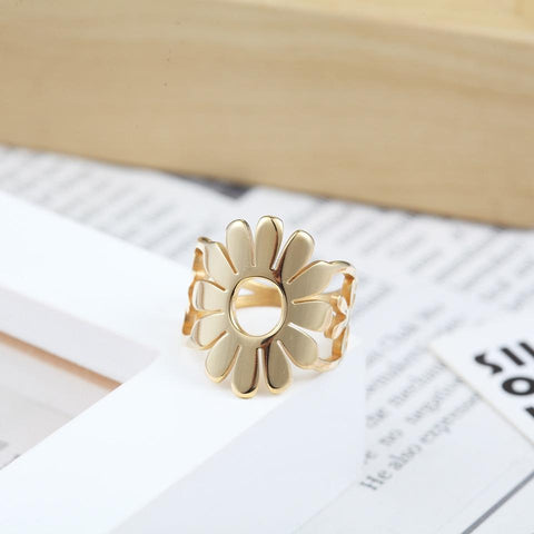 Decorate your hand with this stunning golden floral ring made from high-quality materials.