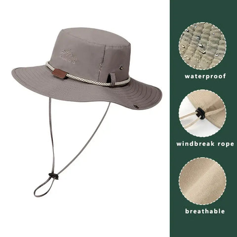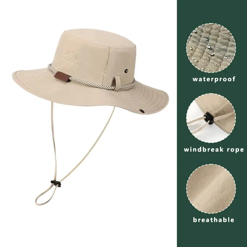 This men's wide-brimmed hat combines functionality and style for outdoor activities. It's more than just a hat - it's an essential accessory for the man who faces nature with elegance and efficiency. Crafted in breathable and waterproof polyester, this bucket-style hat was designed to withstand the most demanding conditions and protect against the sun and the elements. With an adjustable size from 56 to 60 cm, it offers an ideal fit, making it as comfortable as it is practical.