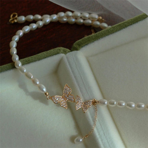 This butterfly choker necklace is very feminine and charming, making it perfect for those looking for an elegant piece of jewellery for a ceremony or wedding. Its pearls are bright and delicate, making this butterfly necklace ideal for softening facial features and illuminating your appearance.