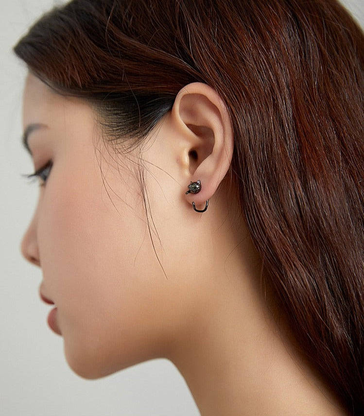 Introducing the most fun earrings you will ever own – the Child Cat earrings! These unique silver earrings are perfect for cat lovers who appreciate creativity and fun. Their black colour perfectly complements various styles, whether you're dressing up elegantly or opting for a more relaxed look. The detailed design of the earrings makes them especially charming – they are simply adorable!