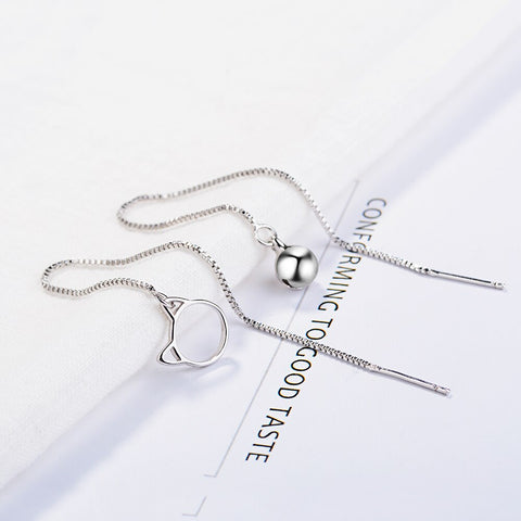Feel elegant and stylish with these charming earrings! The long cat-head earrings will make you look adorable and fashionable in an instant. Each earring features one side of the cat's head facing outwards, while the other side is adorned with a delicately designed clock. Carefully crafted in 925 sterling silver, these earrings are a timeless and playful touch to any outfit.